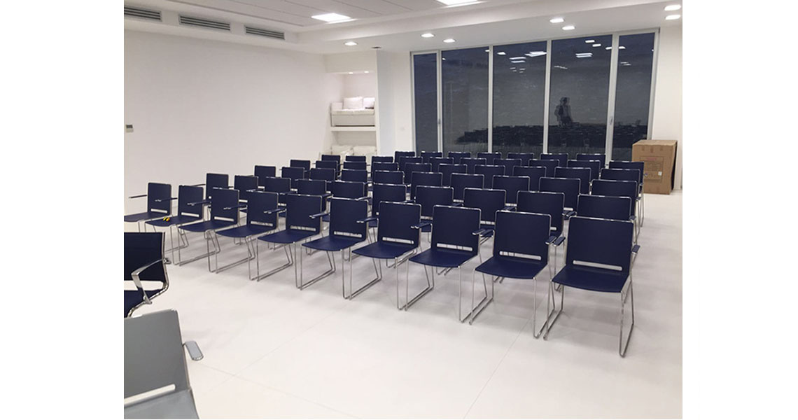 Les salles où se déroulent les congrès, les conférences, les assemblées, les séminaires, les cours et les formations peuvent être considérées comme la rampe de lancement du succès de la convention; beaucoup dépend des solutions en termes d'espace entre les allées et les sièges, de visibilité, de distance par rapport à la scène, etc. Les solutions ergonomiques adoptées pour les sièges jouent un rôle fondamental; en effet, si les participants à l'événement se sentent mal à l'aise, ils deviennent immédiatement impatients et ont tendance à être insatisfaits de tout. C'est pourquoi les chaises pour centres de congrès, salles de cours et salles de formation de Leyform sont conçues et dessinées pour répondre aux besoins des utilisateurs qui communiquent activement et passivement dans ces environnements.