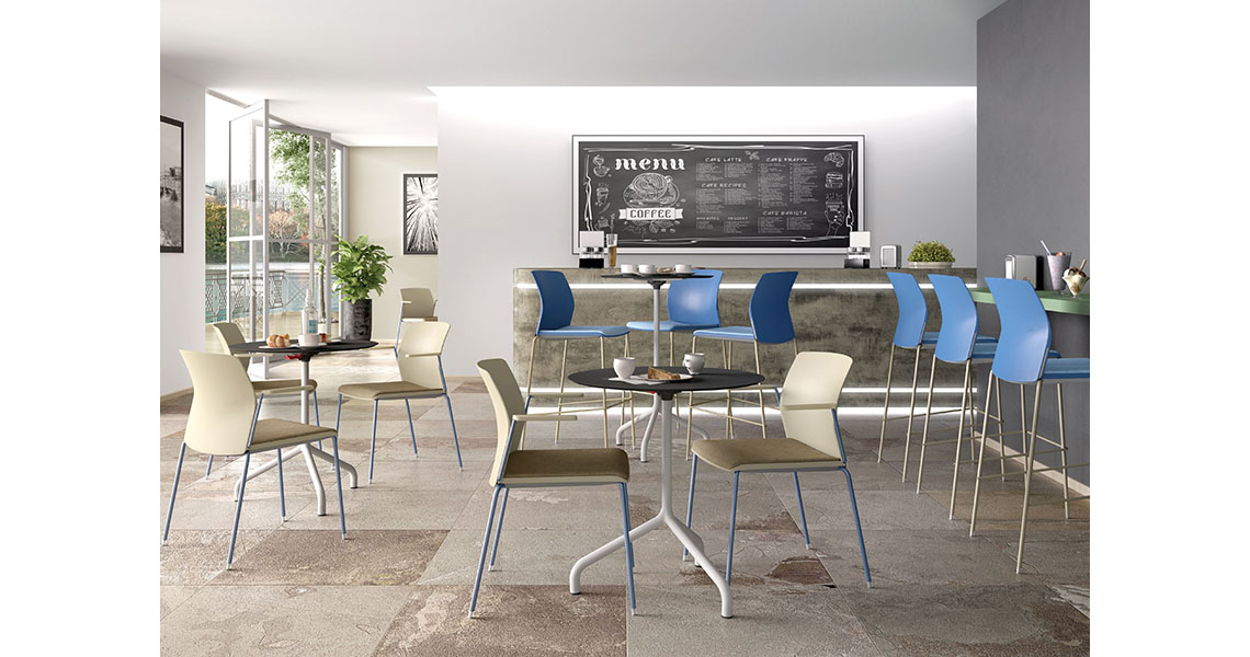 - Tabouret avec structure ronde en acier étiré Ø 11 mm qui peut être chromée ou peinte avec une base en polyester noir ou gris.